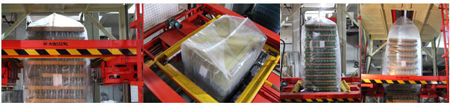 • 針對大型物品的全自動套膜收縮包裝機。可根據托盤尺寸,將筒膜自動進行裁剪制成口袋,并套在托盤物品上,進行收縮包裝, 使整個托盤達到全封閉效果,物品與托盤成為一體,不容易散落。
